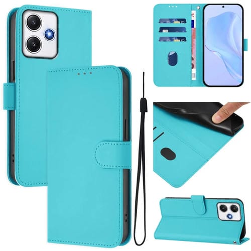 Funda de Piel Sintética con Cordón para Xiaomi Poco M6 Pro 5G (Azul Lago)