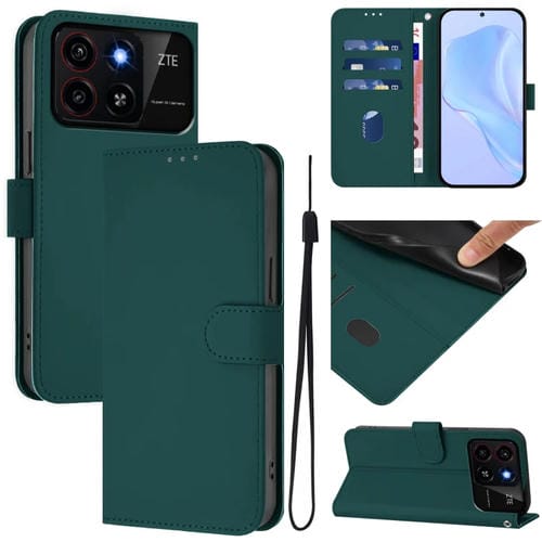 Funda de Piel Sintética con Cordón para ZTE Blade A35/A55 (Verde Oscuro)