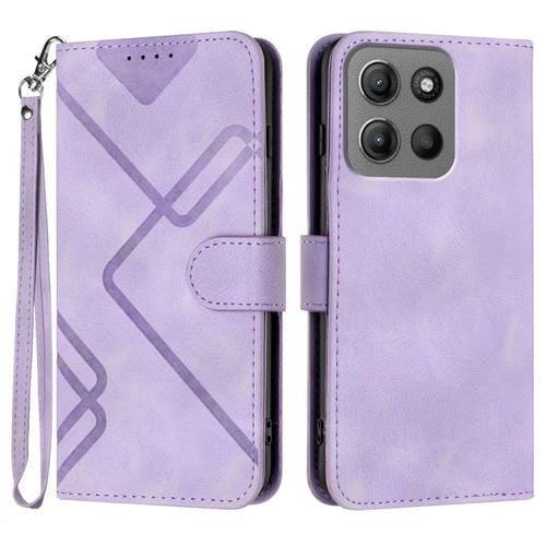 Funda Piel Sintética Motorola Moto G15 Diseño de Líneas (Morado Claro)