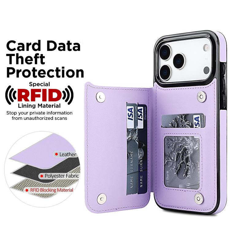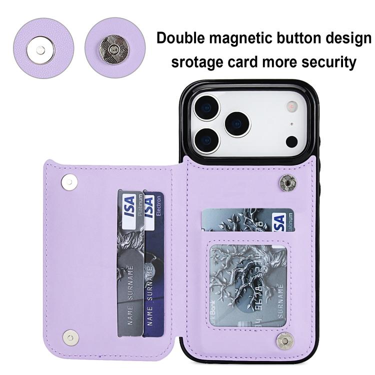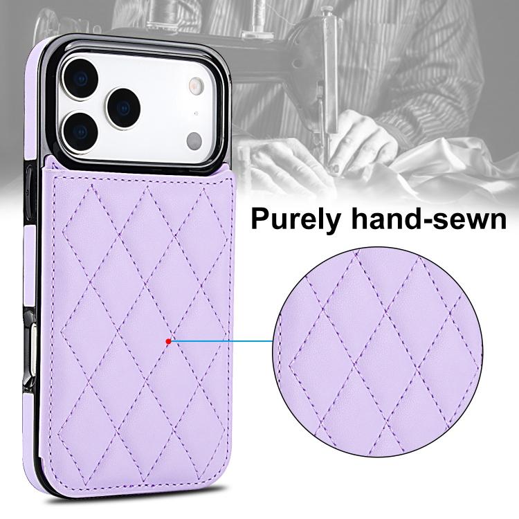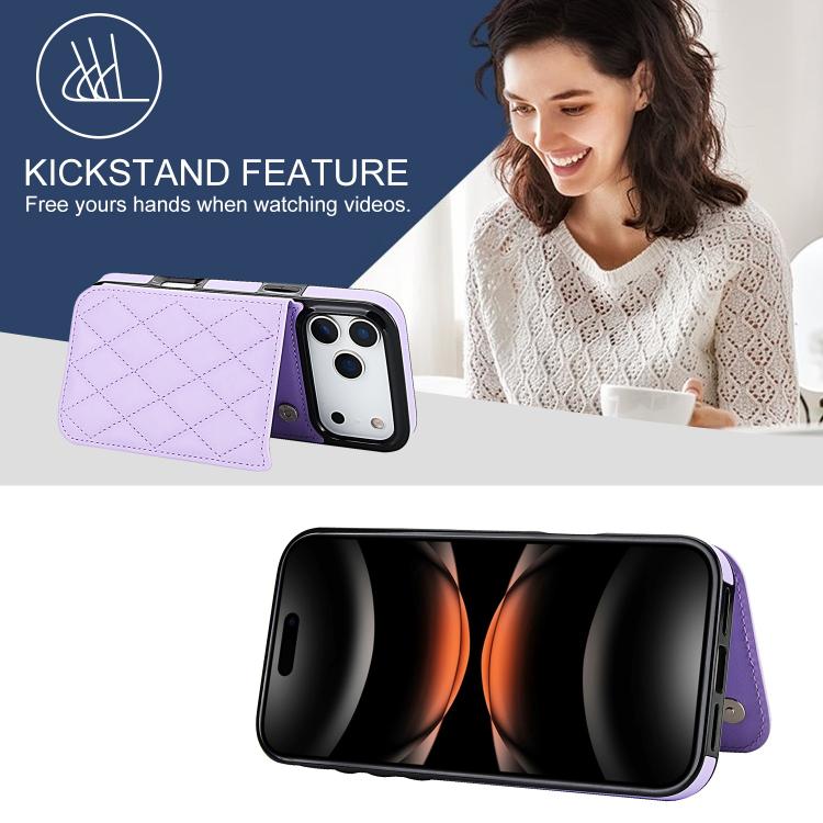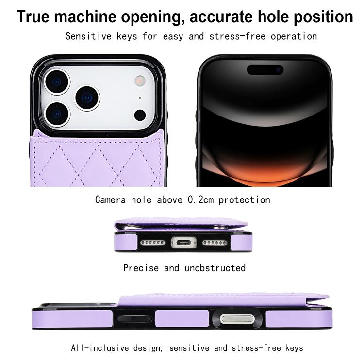 Funda de piel sintética con doble hebilla y diseño rómbico para iPhone 17 Pro Max (morado)