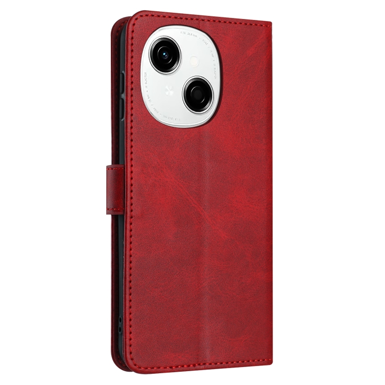 Funda para Tecno Spark Go 1 de Piel Sintética con Tapa y Textura de Becerro (Rojo)