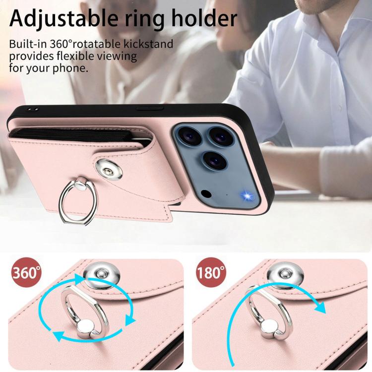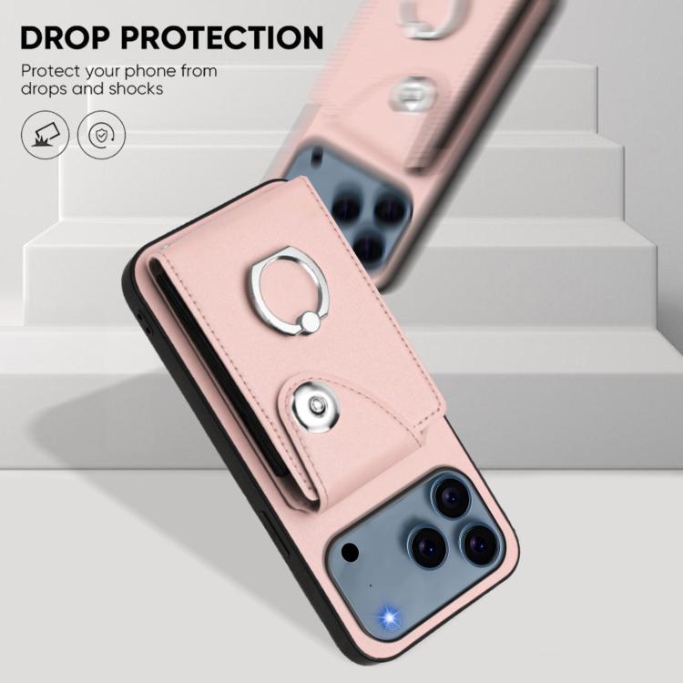 Funda de PU con cordón para iPhone 17 Pro, con tarjetero, anillo y soporte (rosa)