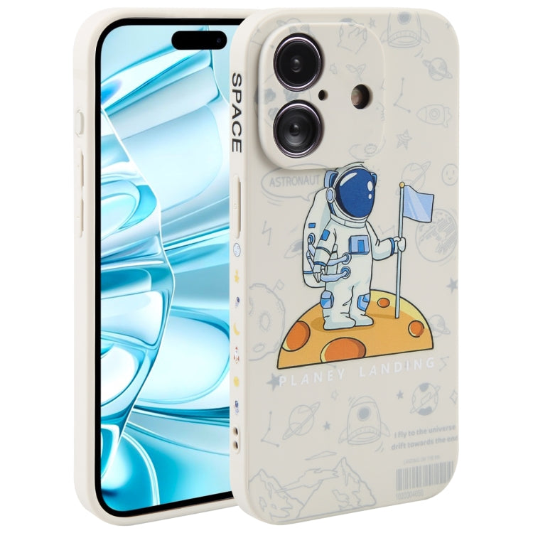 Funda de silicona iPhone 16 Planet Landing diseño Astronauta borde recto (Blanco)