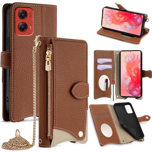 Funda de Cuero con Cadena Cruzada y Diseño Cola de Pez para Motorola Moto G Stylus 5G (2024) (Marrón)