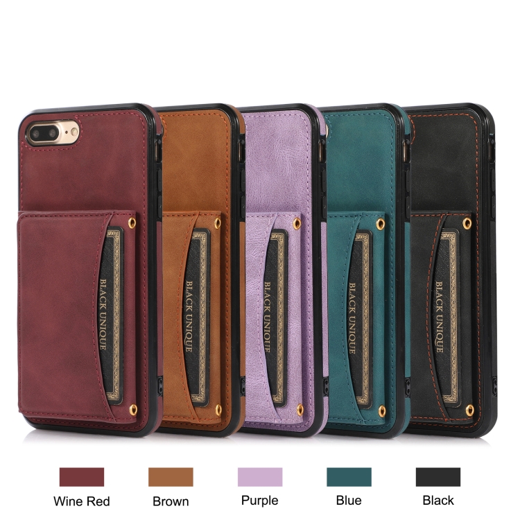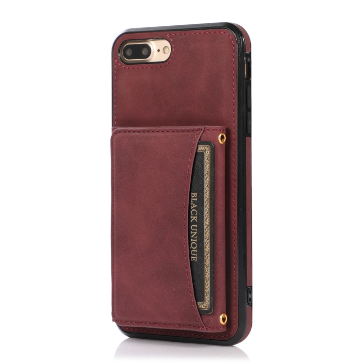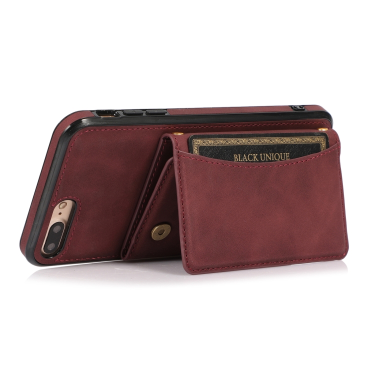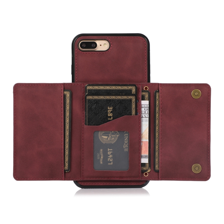 Funda de Teléfono Cuero Tridimensional iPhone 8 Plus y 7 Plus Ranura Tarjeta Billetera Soporte (Rojo de Vino)
