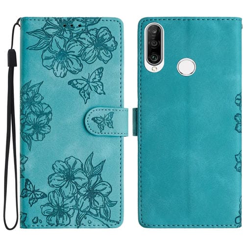 - 1x Funda de Teléfono PU Huawei Y6P con Relieve Mariposa y Flor de Cerezo (Verde)