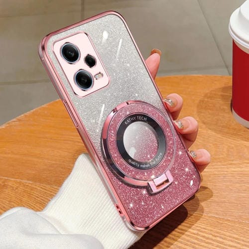 Funda de Teléfono de TPU con Soporte Redondo y Purpurina Degradada Chapada En Oro Rosa para Redmi Note 12 Pro 5G