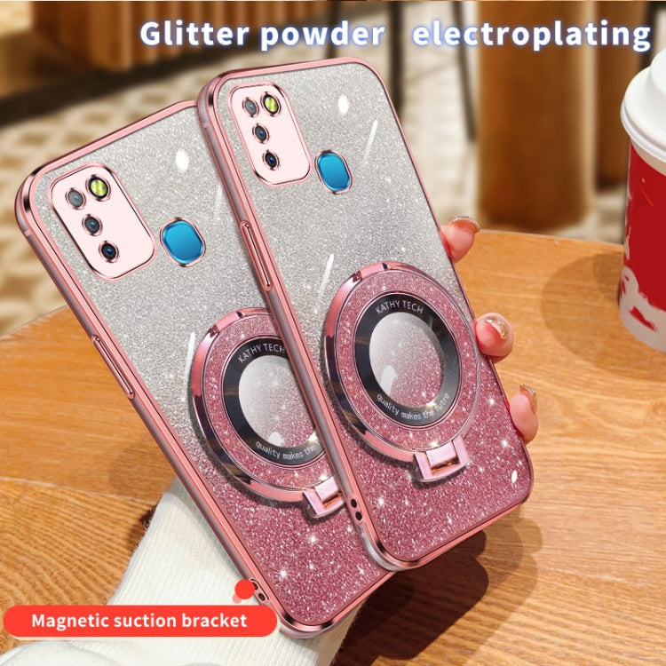 Funda de TPU para Infinix Smart 5 con Soporte Redondo y Purpurina Degradada (Rosa)