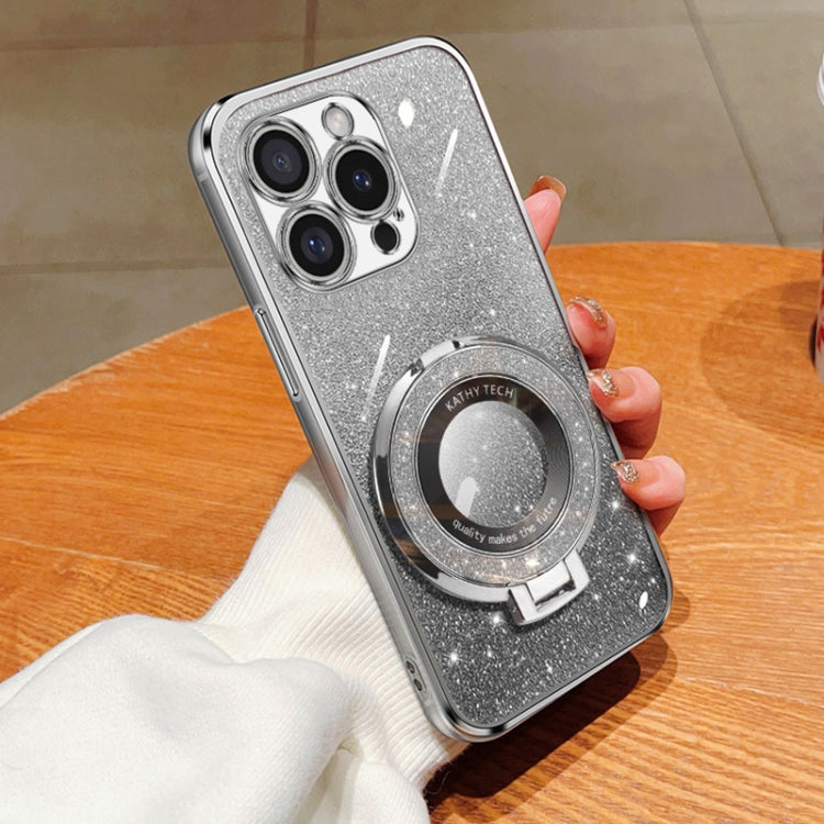 Funda de Teléfono TPU con Soporte Redondo y Purpurina Degradada para iPhone 16 Pro Max (Plateada)