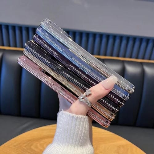 Funda de TPU con purpurina y degradado de agua con diamantes para iPhone 17 (negra)