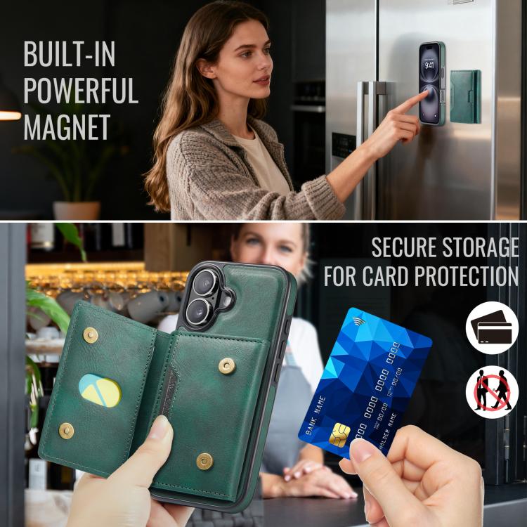 Funda desmontable para iPhone 17 MAGKING K4 Series MagSafe RFID con tarjetero plegable (verde)