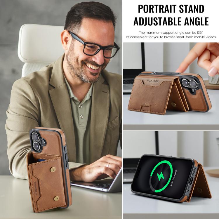 Funda desmontable para iPhone 17 MAGKING K4 Series MagSafe RFID tipo tarjetero plegable (marrón)