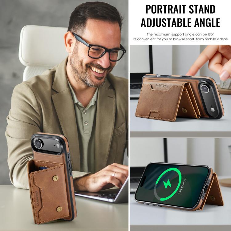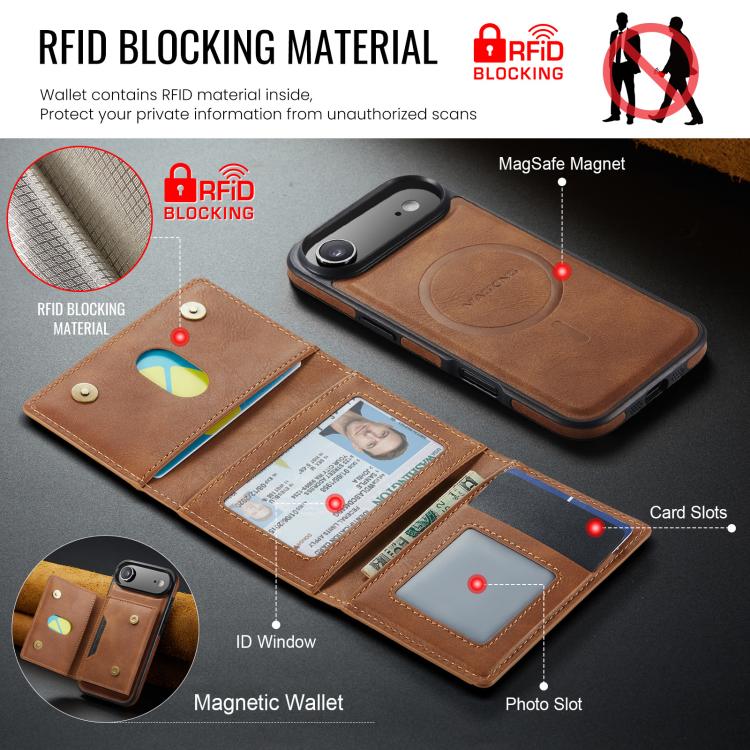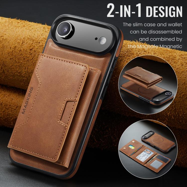 Funda desmontable para iPhone Air MAGKING K4 Series MagSafe RFID con tarjetero plegable (marrón)