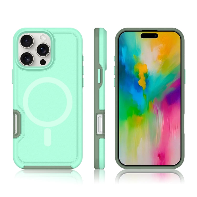 Funda híbrida TPU y PC con Protección Magsafe para iPhone 16 Pro Max (Verde Menta y Verde Grisáceo)