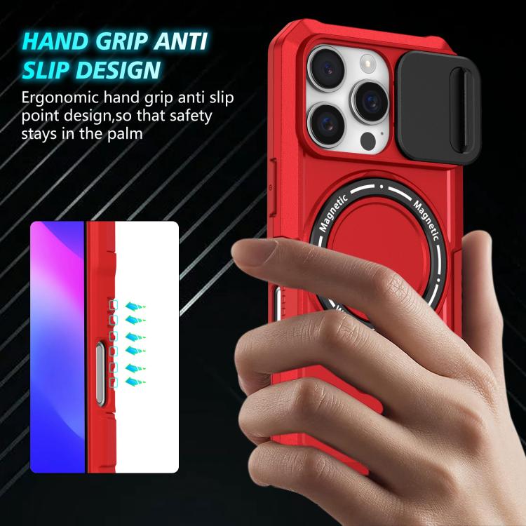 Funda híbrida TPU y PC con Soporte Magsafe y Protección para iPhone 16 Pro Max (Rojo)