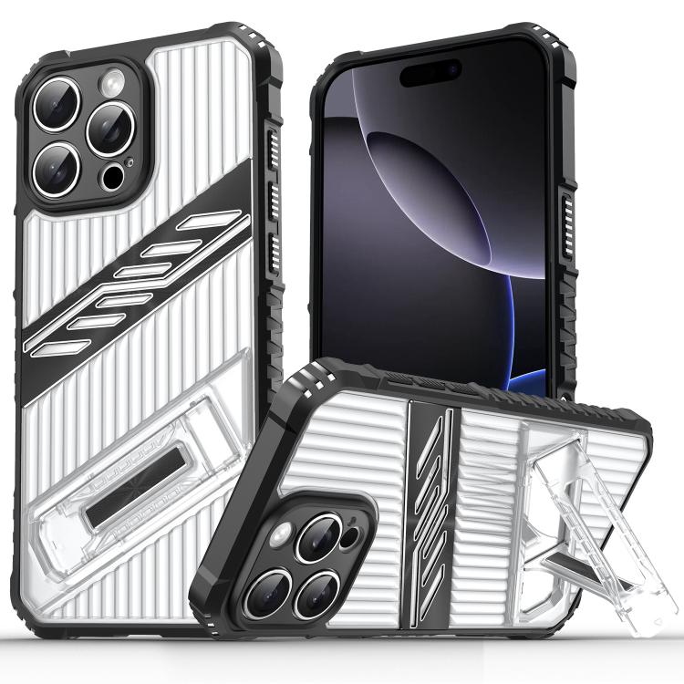 Funda híbrida TPU y PC con soporte para iPhone 16 Pro Max (Transparente y Negra)