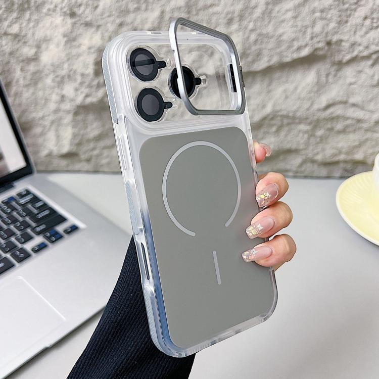 Funda híbrida de TPU y PC MagSafe para iPhone 17 Pro Max con soporte de lente galvanizado (gris)