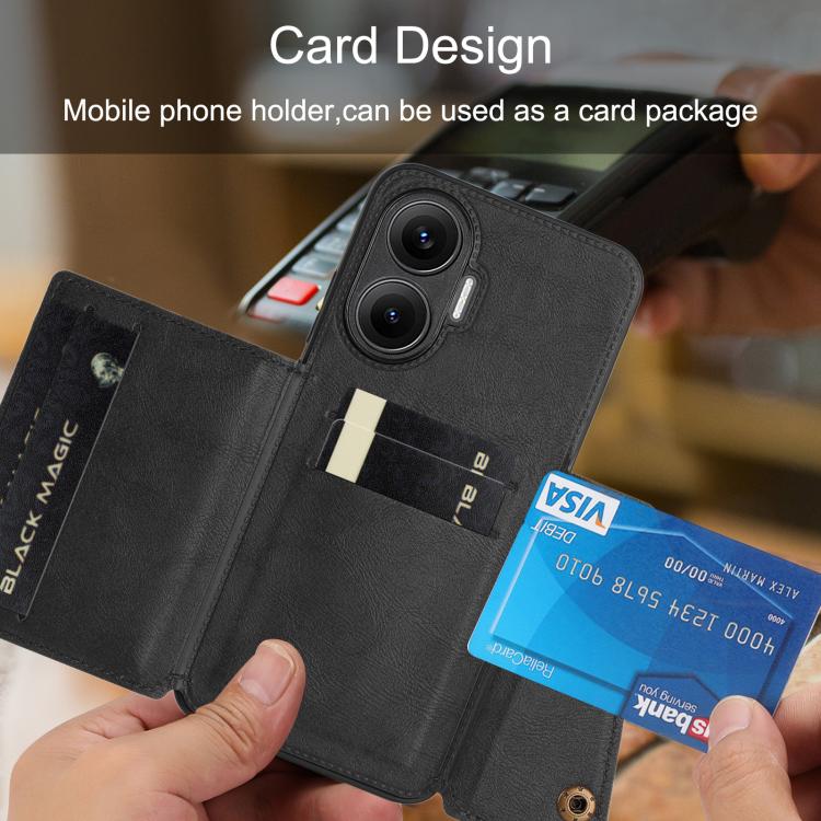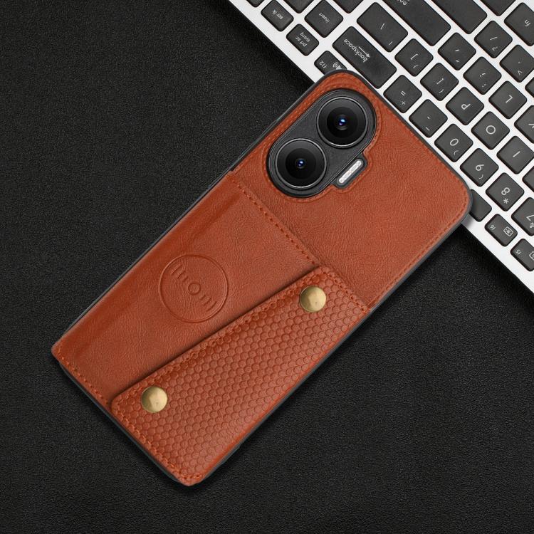 Funda magnética con doble hebilla y ranuras para tarjetas para Redmi Turbo 4 Pro (marrón)
