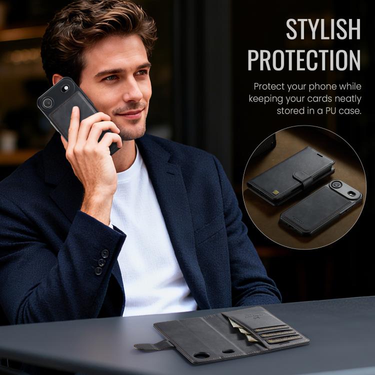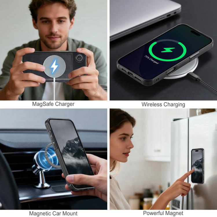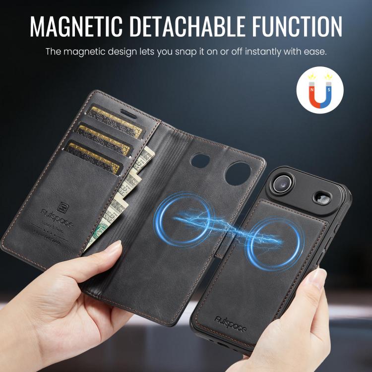 Funda magnética MagSafe AutSpace A05 2 en 1 con textura de piel de becerro retro para iPhone Air (negra)