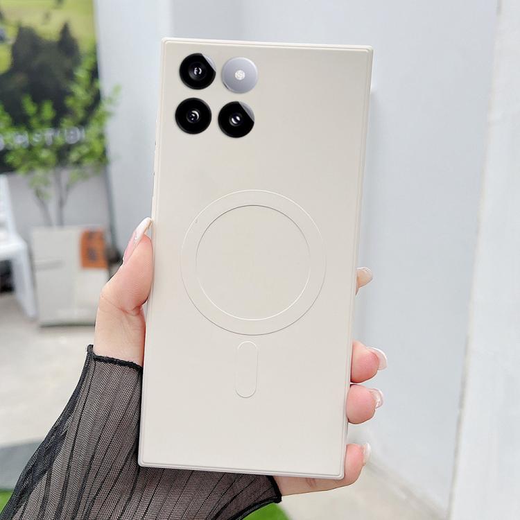 Funda magnética MagSafe de silicona líquida de color sólido para Xiaomi 14 Pro (blanco antiguo)