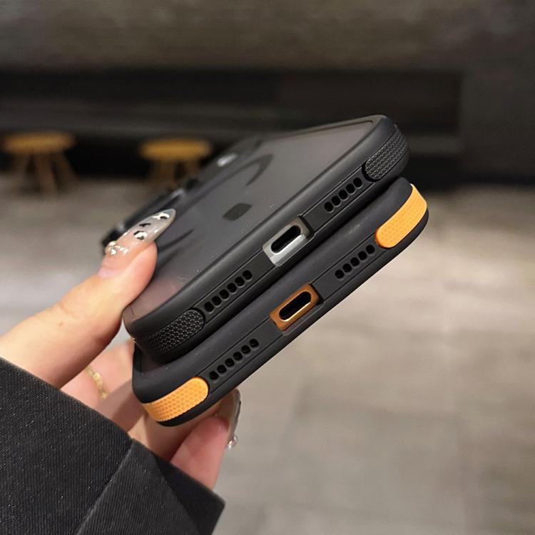 Funda magnética MagSafe para iPhone Air con soporte para lente de metal esmerilado y tacto suave (Oro desierto)