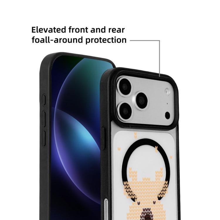 Funda magnética resistente con borde negro pintado de la serie navideña para iPhone 17 Pro (Ciervo de punto)