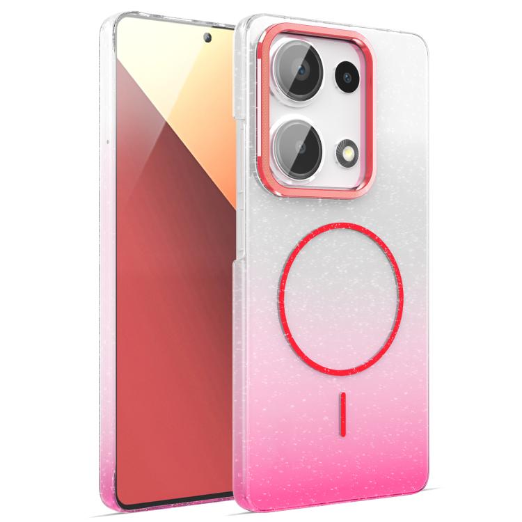 Funda MagSafe a prueba de golpes para Xiaomi Redmi Note 13 Pro 4G con purpurina dorada y degradado (rojo)