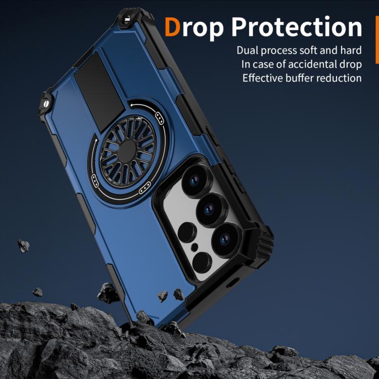Funda MagSafe para Samsung Galaxy S24 Ultra 5G, a prueba de golpes, con soporte metálico y eje (azul)