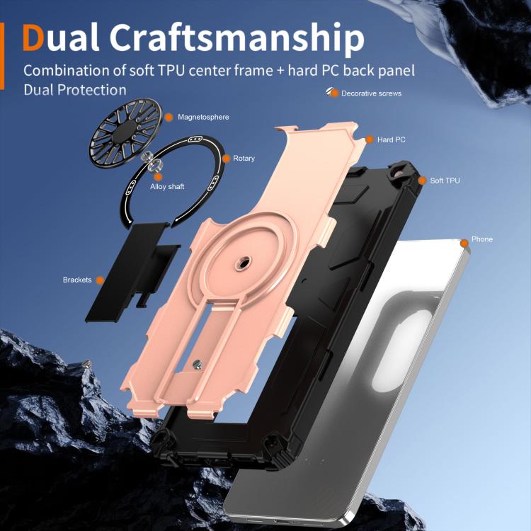 Funda MagSafe para Samsung Galaxy S25 Edge 5G con soporte metálico, a prueba de golpes y función atril (oro rosa)