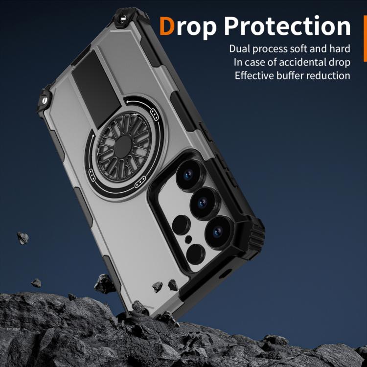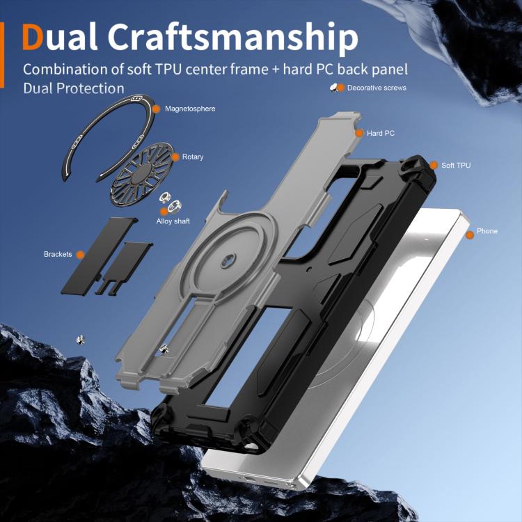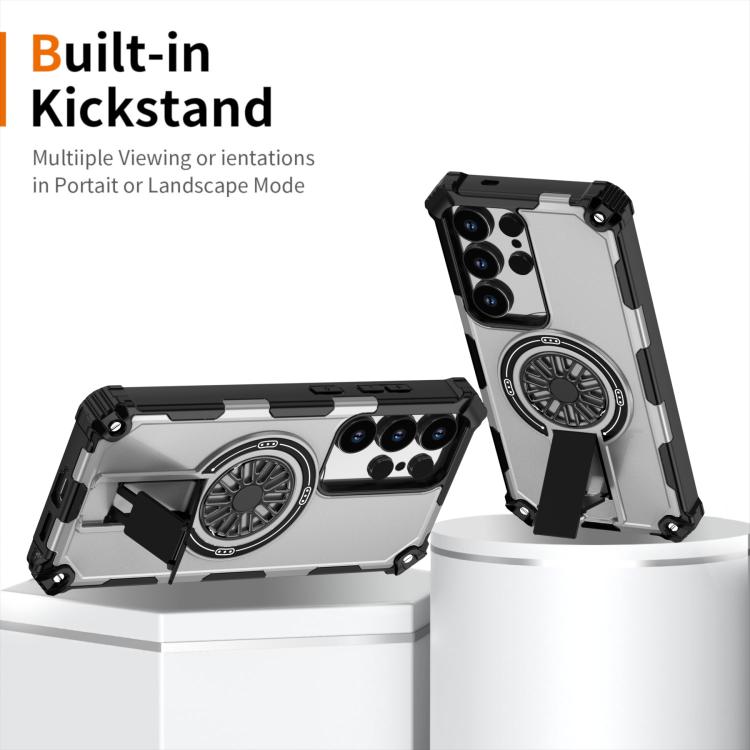 Funda MagSafe para Samsung Galaxy S25 Ultra 5G, a prueba de golpes, con soporte metálico y eje (plateada)