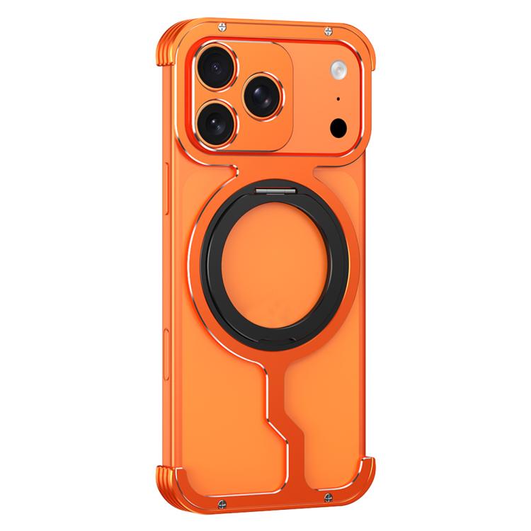 Funda metálica para iPhone 17 Pro Max con soporte magnético MagSafe, sin marco y disipación de calor (naranja y negro)