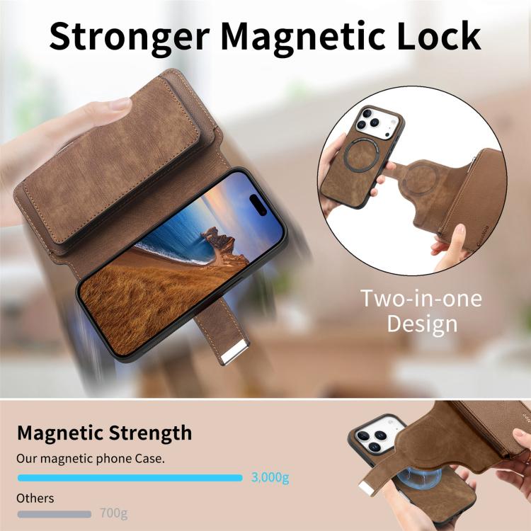 Funda Neo MagSafe RFID antirrobo con cremallera para iPhone 17 Pro Max, estilo retro, de cuero (marrón)