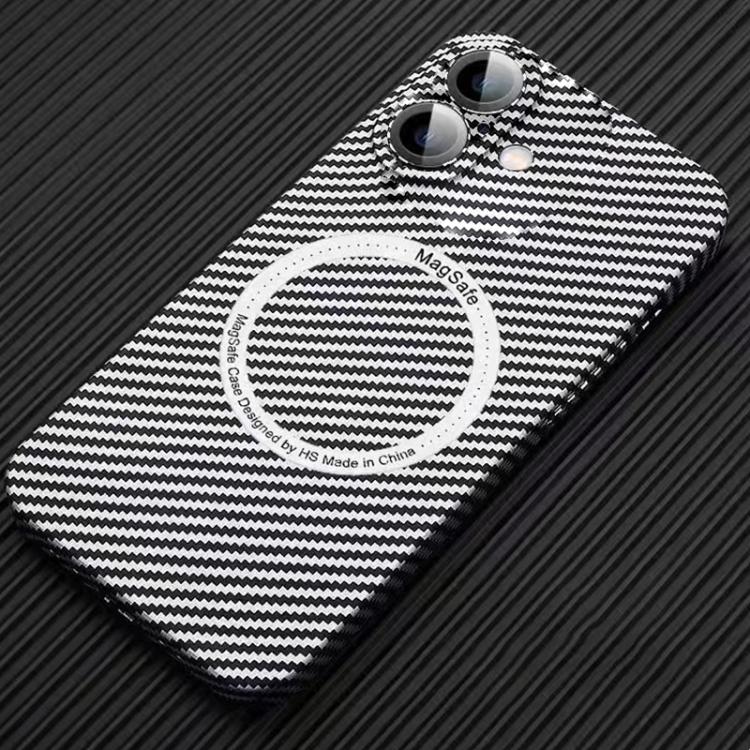 Funda para iPhone 16 Fibra de Carbono con Imán Magsafe para PC y Película para Lentes (Blanco Plateado)