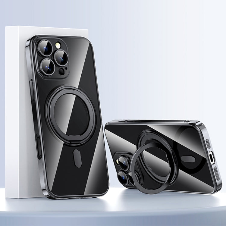 Funda para iPhone 16 Pro Soporte de Anillo PC Chapado 360 Magsafe (Negro Transparente)