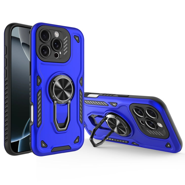 Funda para iPhone 16 Pro Max Soporte Giratorio Metal Carcasa Magnética TPU PC (Azul Marino)
