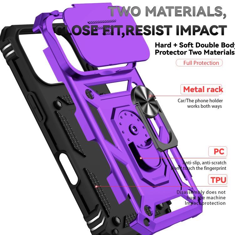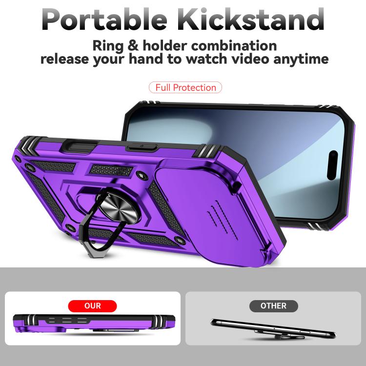 Funda para iPhone 17 Pro con soporte deslizante Camshield (morado)