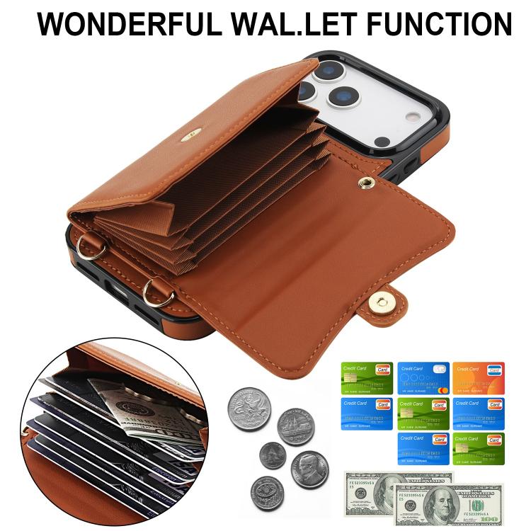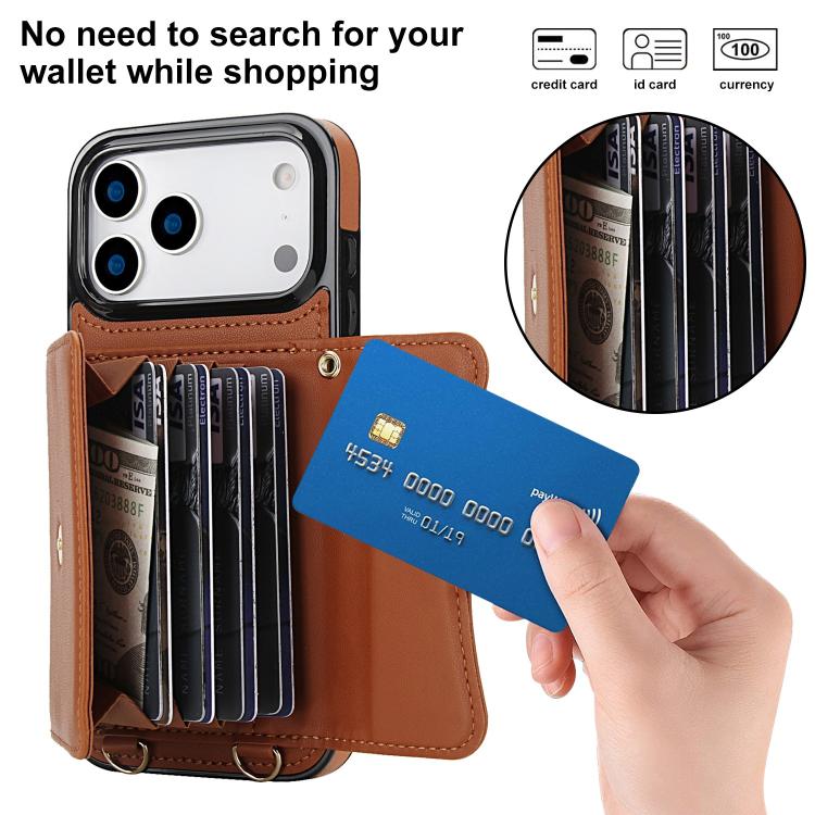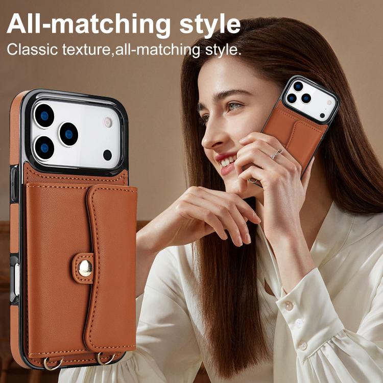Funda para iPhone 17 Pro Max con ranura para tarjeta RFID y cordón largo (marrón)