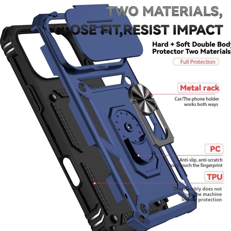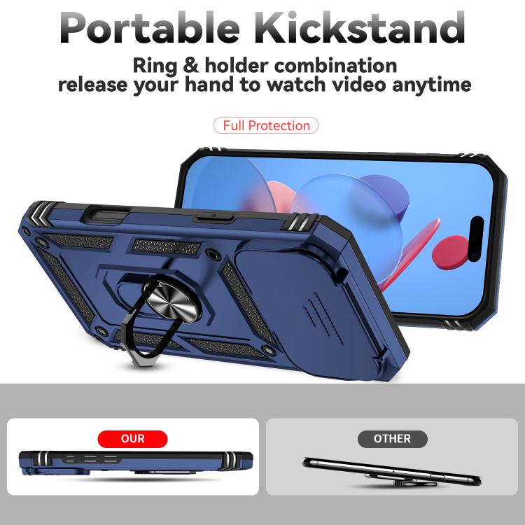 Funda para iPhone 17 Pro Max con soporte deslizante tipo cámara (azul)