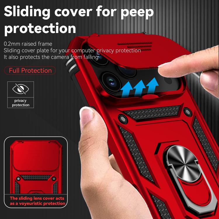 Funda para iPhone 17 Pro Max con soporte deslizante tipo cámara (roja)
