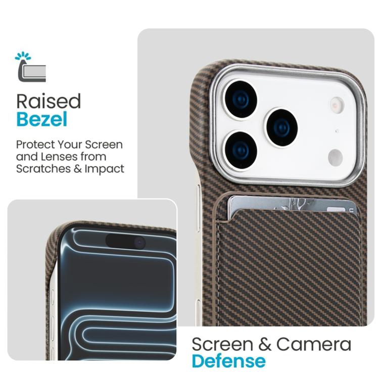 Funda para iPhone 17 Pro Max con tarjetero magnético MagSafe de fibra de carbono (marrón)