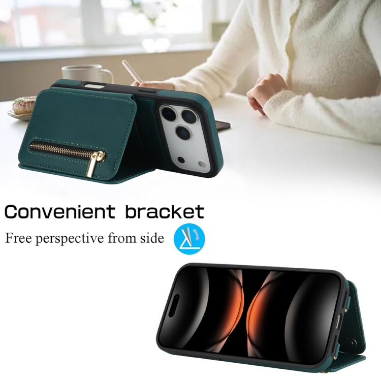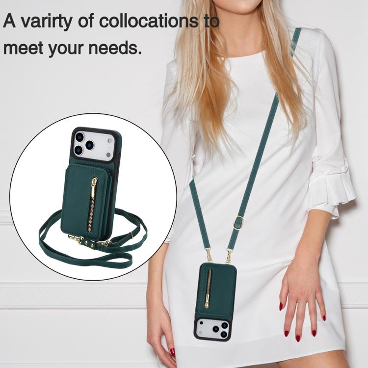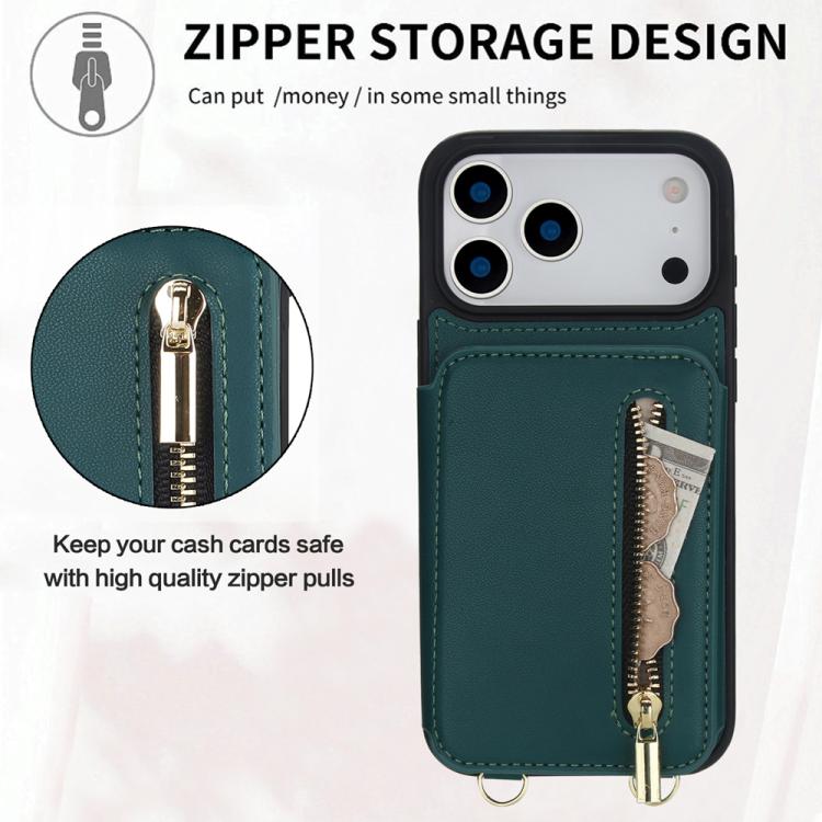 Funda para iPhone 17 Pro Max YM006 con cremallera y doble cordón (verde)