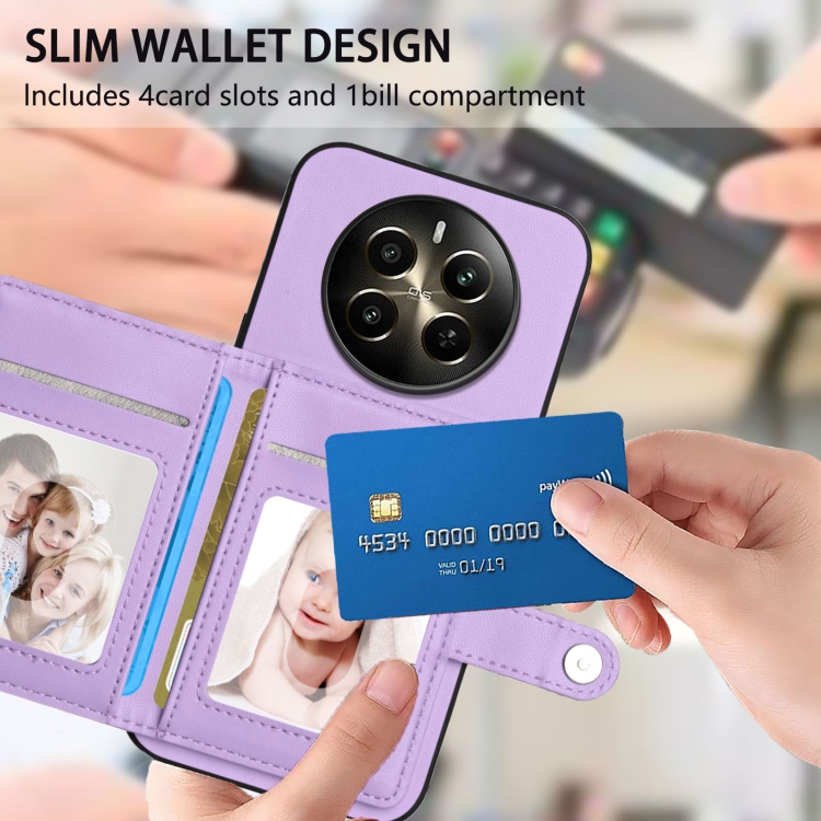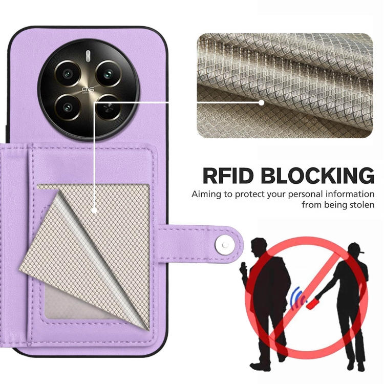 Funda para Teléfono Antirrobo Rfid con Botón para Tarjeta Realme 12+ 5G/P1 5G (Morado)