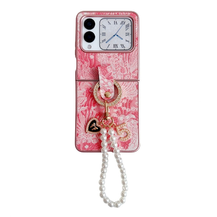Funda para Teléfono Huawei Nova Flip con Cobertura Total Bordado Cadena y Anillo (Rosa)