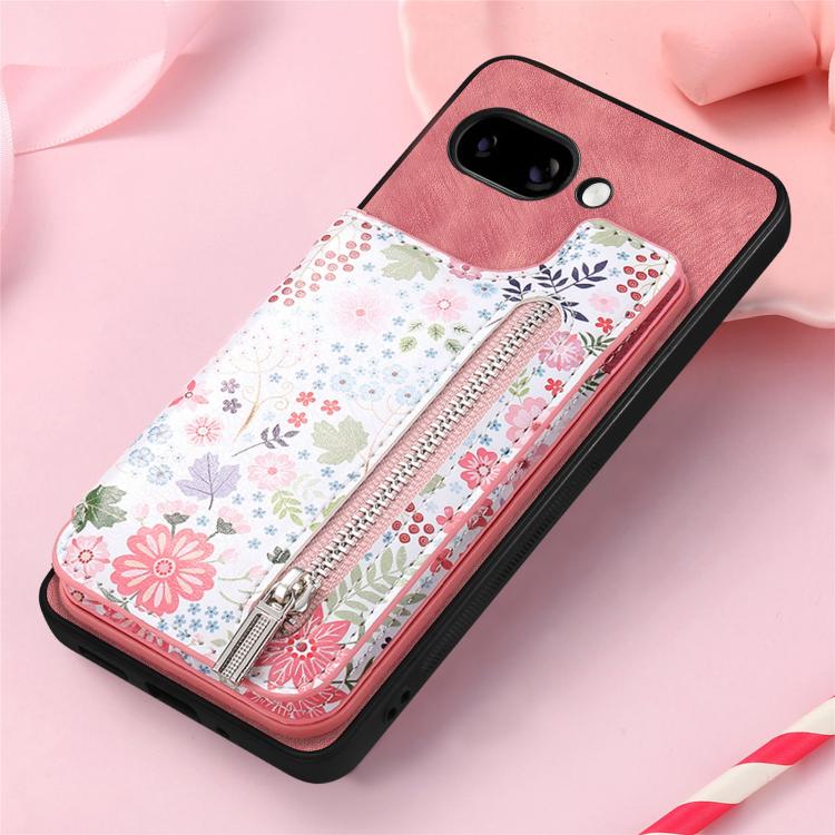 Funda para Teléfono Google Pixel 9A con Cremallera Trasera y Diseño Retro Pintado (Rosa)
