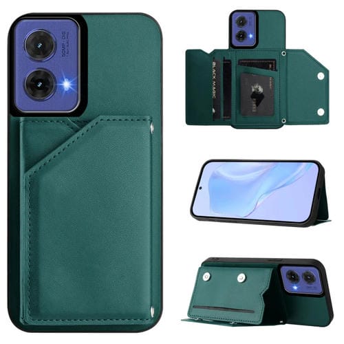 Funda para Teléfono Motorola S50 Neo Skin Feel con 4 Ranuras para Tarjetas y Correa (Verde)