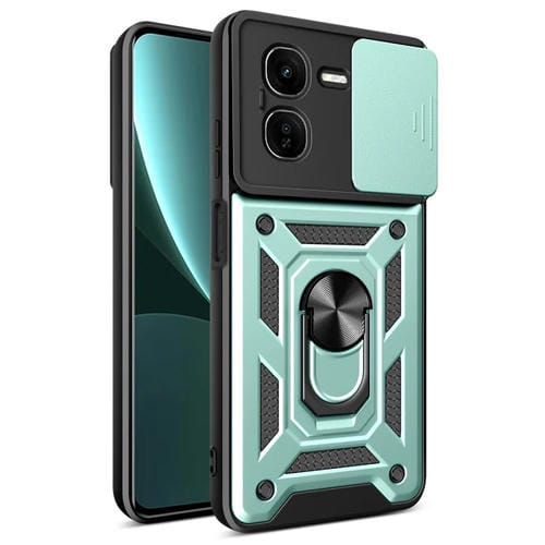 Funda para Teléfono con Diseño de Cubierta Deslizante para Cámara para Vivo Iqoo Z9X de TPU y PC (Verde)