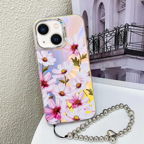 Funda para Teléfono iPhone 13 con Diseño de Flores y Galvanoplastia Láser con Correa para Muñeca (Flor Cosmos Ah7)