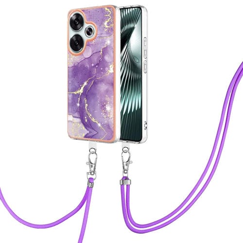 Funda para Teléfono con Imd de Doble Cara con Galvanoplastia de Mármol para Xiaomi Poco F6 5G con Cordón (Púrpura 002)