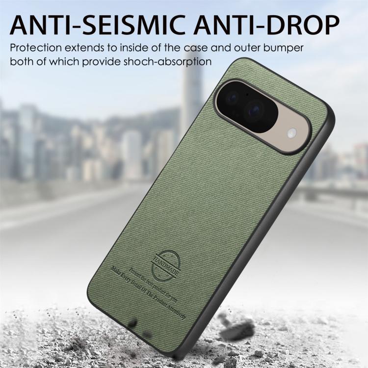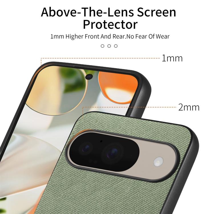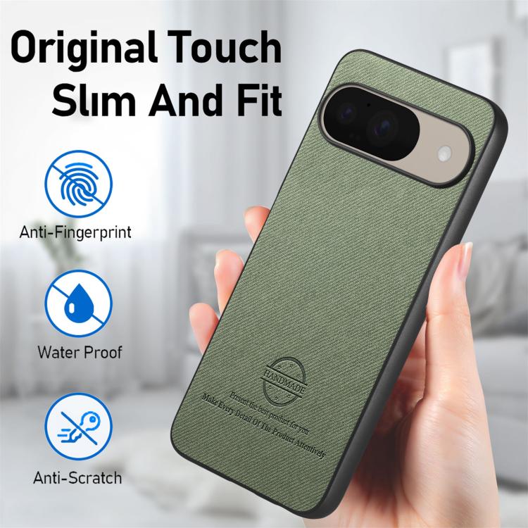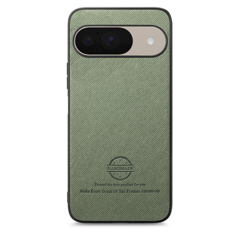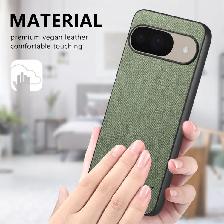 Funda para Teléfono Google Pixel 9/9 Pro Parte Trasera Piel y Tejido de Sarga (Verde)