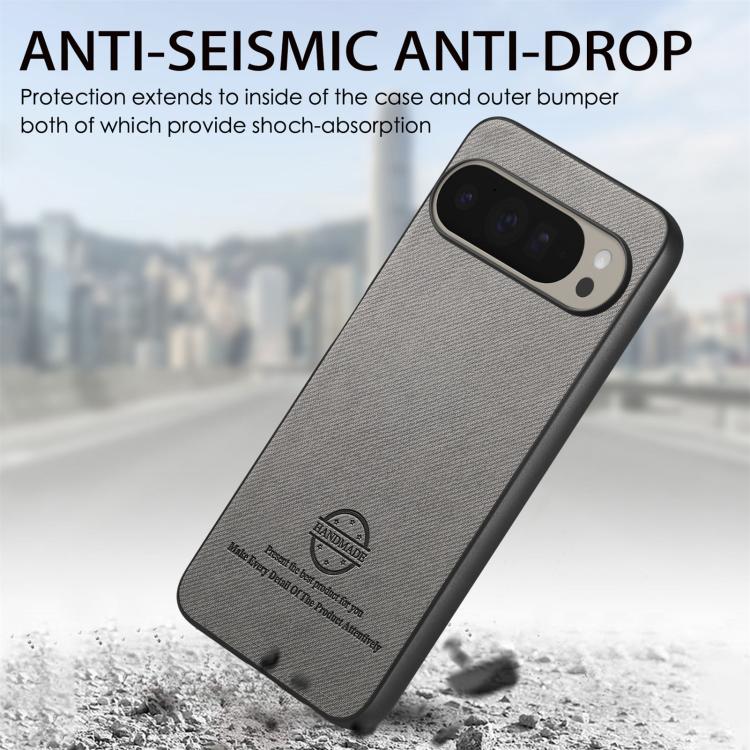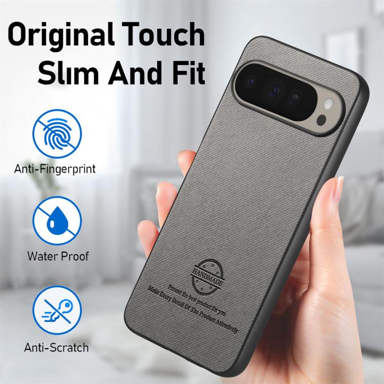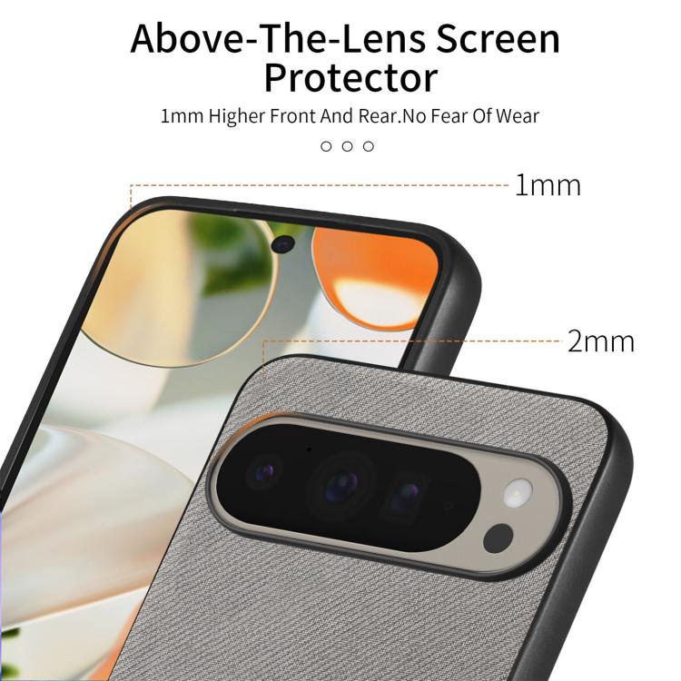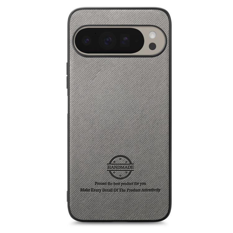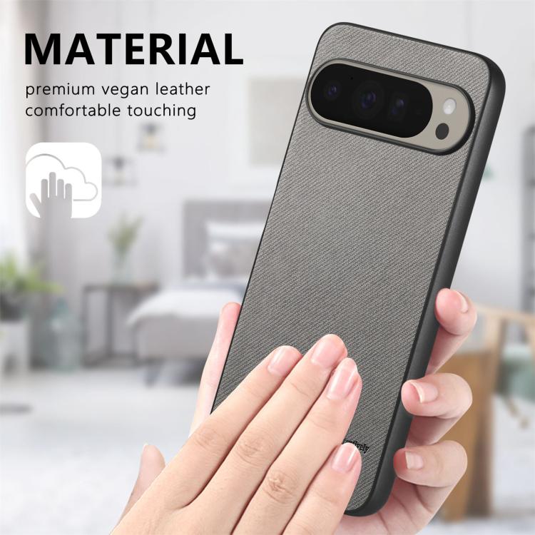 Funda para Teléfono Google Pixel 9 Pro XL con Parte Trasera de Piel y Tejido de Sarga (Gris)